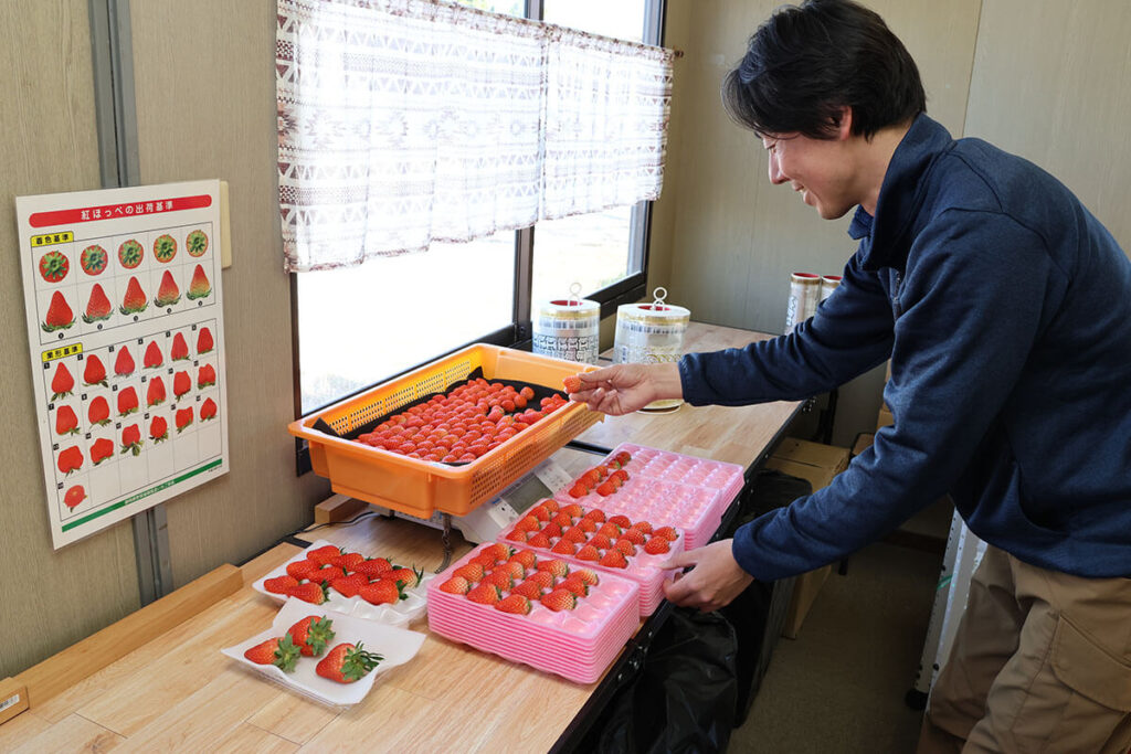 イチゴを選んだ理由は、大人から子どもまで多くの人に愛されている果物だからです。みんな好きです よね?自分は大好きです(笑)。栽培しているのは「紅ほっぺ」という品種です。 静岡県の特産物でもあり、この遠州地域でも栽培が盛んです。産地一丸となって活気があるのも魅力的でした。