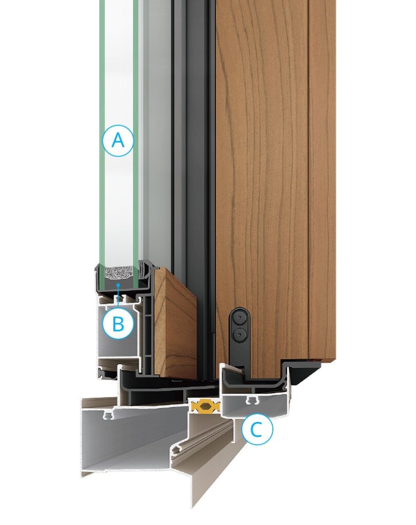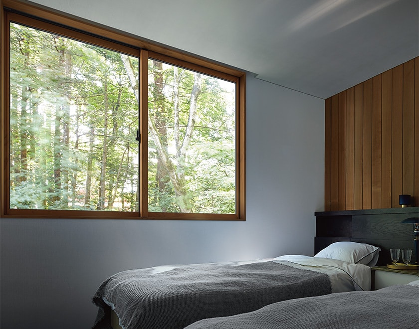 室内側には、アルミの約1/1500の熱伝導率の木を採用。