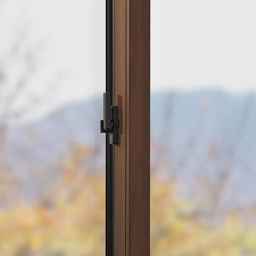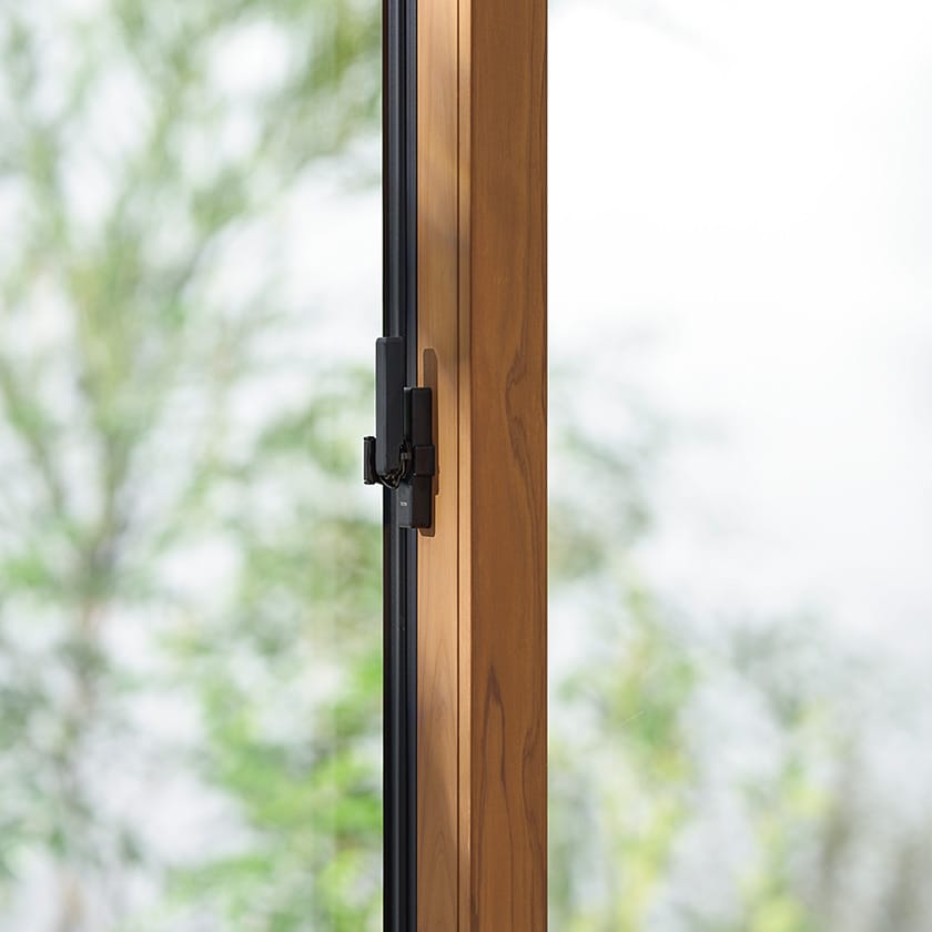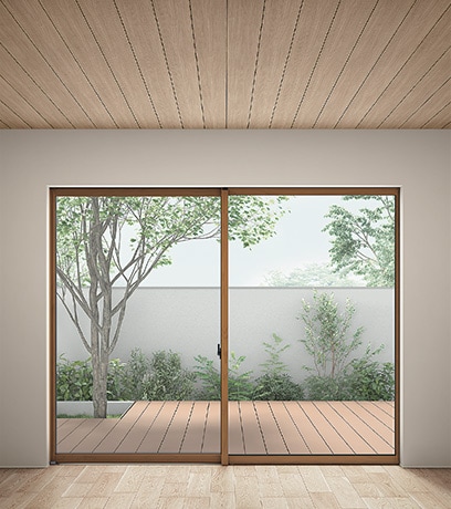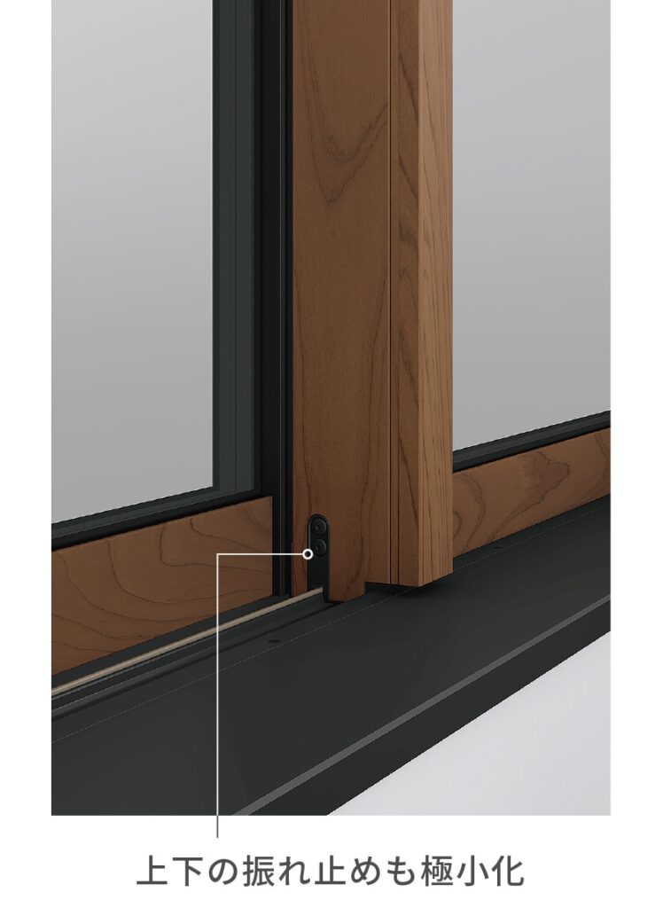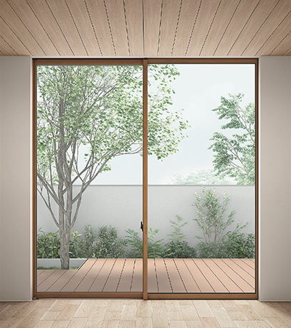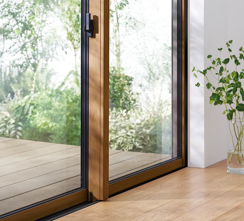 さらに室外側にはアルミ形材を採用することで、雨風に対する耐候性も確保。天然木の美しさと実用性を見事に両立させています。