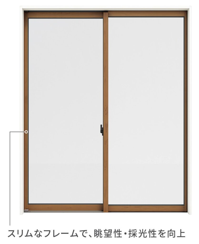 このように、すべての縦フレームの幅が揃って見えるので、正面から見た時もすっきり美しく、視界も大きく広がります。
