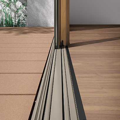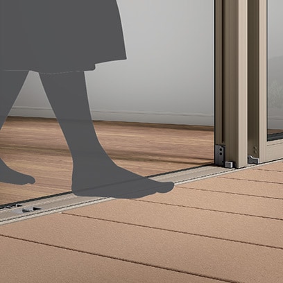 下枠の段差を小さくした「フラットタイプ」は、レール溝が小さいため、つまずきにくく出入りする際も安心・安全。さらに、ゴミがたまりにくい構造で、お掃除もラクラクです。