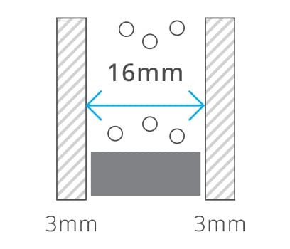 乾燥空気に比べて、熱の出入りを約30%抑制。アルゴンガスが高い断熱効果を発揮する16mmの最適中空層設計が自慢です。(ただし、ガラスの構成によっては変わる場合があります)