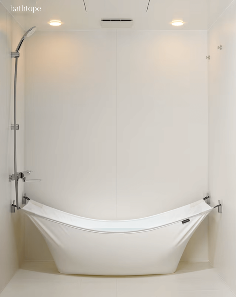 bathtopeの最大の特徴は、布製の浴槽(fabric bath)を採用していること。