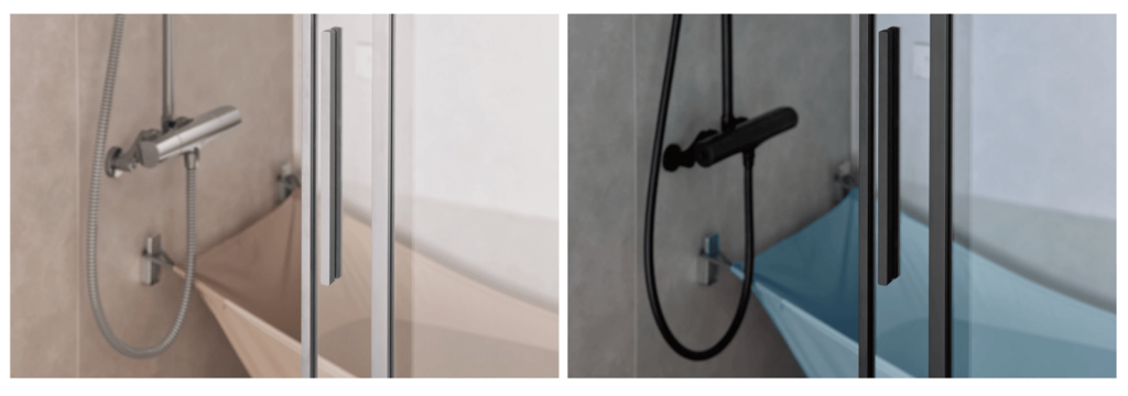 この美しいドアが、浴室全体の印象を一変させ、まるで高級ホテルのスパのような雰囲気を醸し出します。