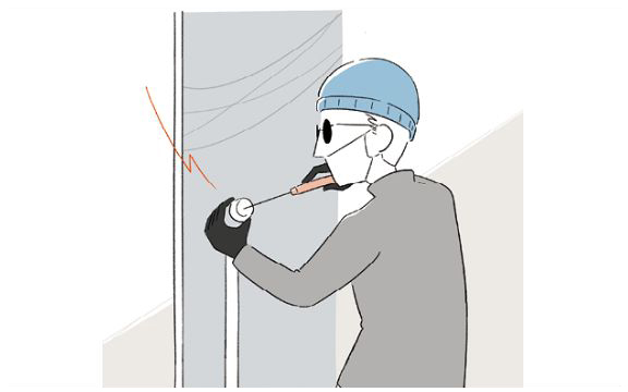 バールなどの工具をドアと枠の間に差し込み、てこの原理でカギを破壊して侵入する手口です。