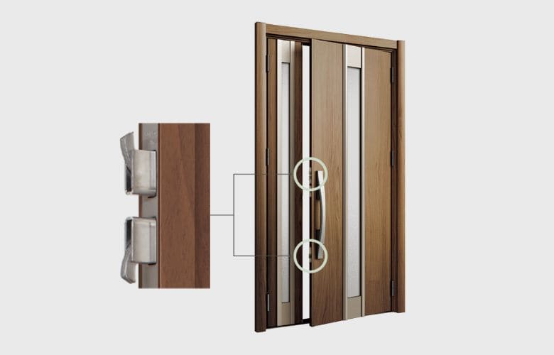 ドアと枠の噛み合わせを強化した「鎌付デッドボルト」により、こじ破りへの抵抗力も高めています。