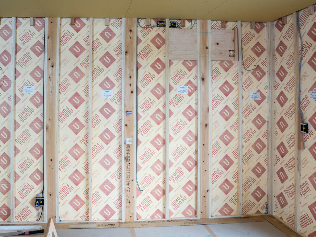 コーチパネルの壁の内側には、ネオマフォーム80mmの断熱材を施工しています。