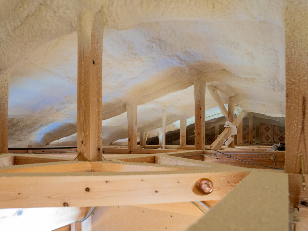 この画像は屋根裏に施したウレタン吹付断熱の様子です。