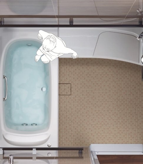 腰掛けて入浴できるため、足腰への負担が少なく、安全で快適な入浴ができます。
