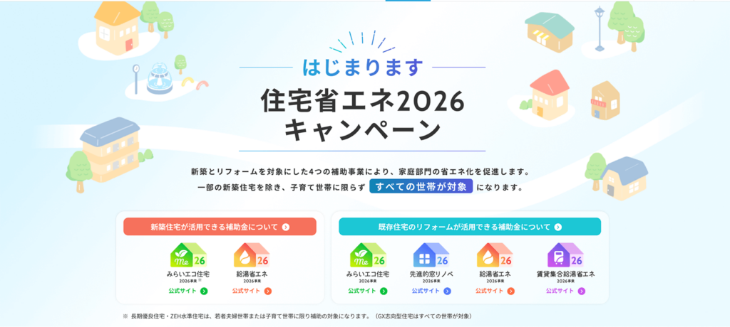 住宅省エネ2026キャンペーンの公式情報はこちら↓