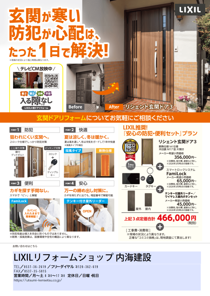 玄関の寒さ・防犯の不安を1日で解決